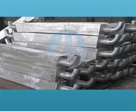 · 最常用的鋁合金陽極有Al-Zn-In系和Al-Zn-Hg系陽極,適用于海水中的船舶、碼頭港口與海洋設施、海水冷卻水系統(tǒng)和儲罐沉積水部位等構(gòu)筑物的 陰極保護。鋁鋅銦系(AZI系)犧牲陽極是用高純度鋁及鋅、銦等金屬合金化而鑄成的。鋁合金陽極生產(chǎn)執(zhí)行GB4948-2002《鋁-鋅-銦系合金犧牲陽 極》。